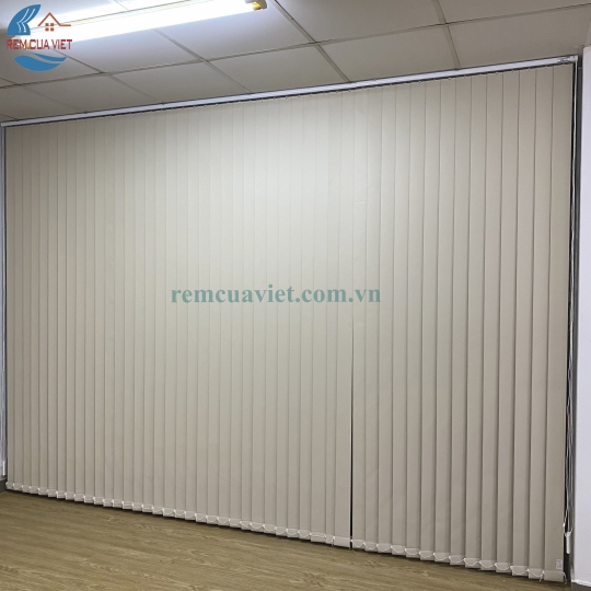 Rèm lá dọc văn phòng thường được dùng cho những ô kính văn phòng lớn nhằm tối ưu chi phí và tiện dụng (sử dụng điều chỉnh sáng chỉ bằng 1 lần kéo).
