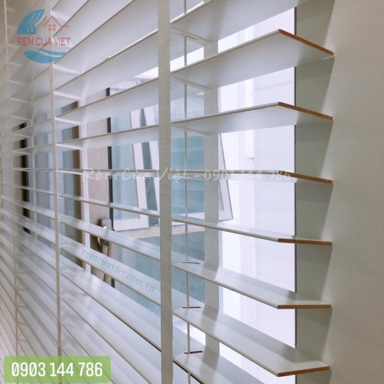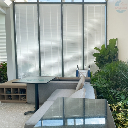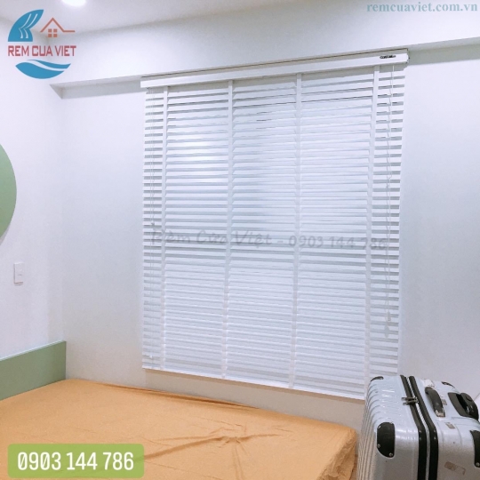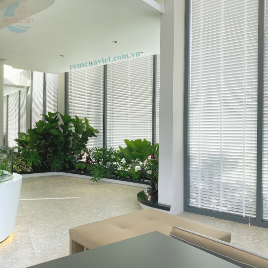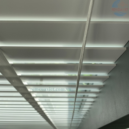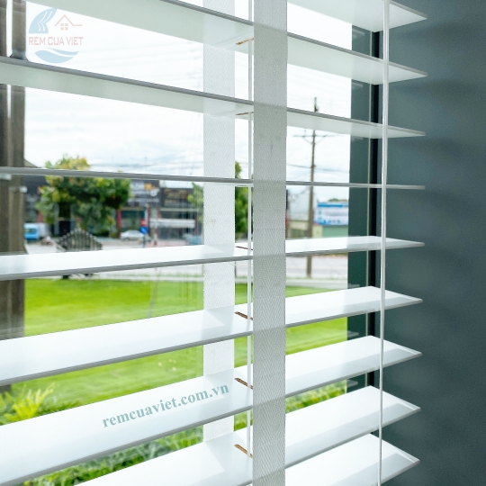 Mẫu rèm sáo gỗ tự nhiên màu trắng được làm từ những lá gỗ có bề rộng 25mm, 35mm và 50mm mang đến khả năng cản sáng và cách nhiệt tốt, giúp ngăn chặn sự tăng nhiệt từ bên ngoài vào không gian phòng ở, điều chỉnh cường đồ sáng dễ dàng và nhanh chóng.