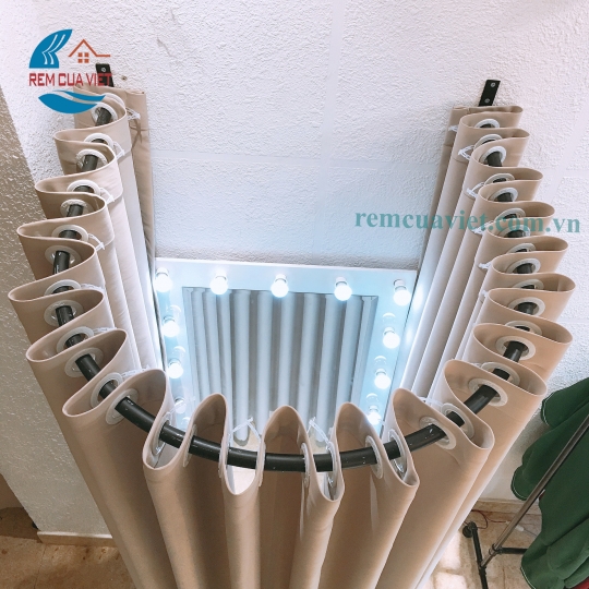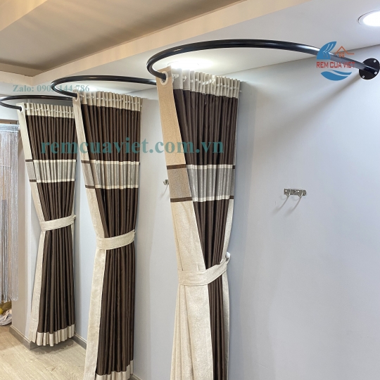Đây là mẫu thiết kế đặc biệt theo yêu cầu của từng shop và rất ít gặp. Bạn có thể yêu cầu Rèm Cửa Việt thiết kế khung rèm thay đồ từ các chất liệu: sắt, nhôm, inox,…uốn theo những đường cong riêng. Đồng thời bạn cũng có thể lựa chọn chất vải lanh, vải bố,…vừa mộc mạc lại vừa hiện đại để may lên những bộ rèm riêng.