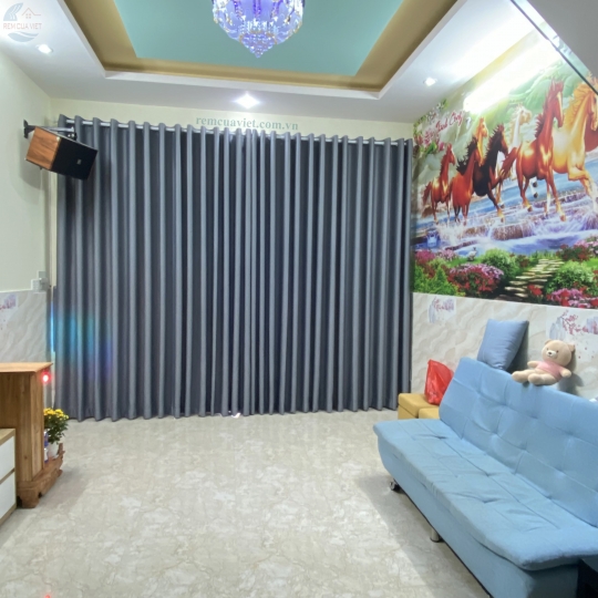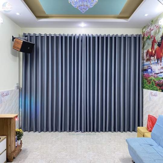 Rèm Vải 1 Lớp Màu Xám Xanh