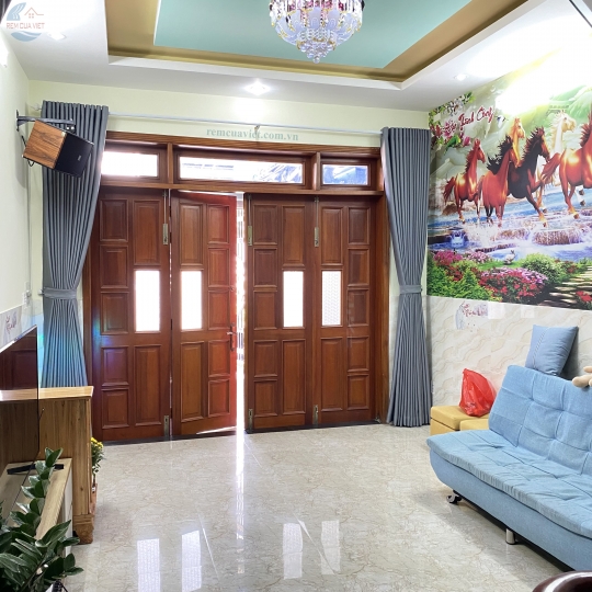 Mẫu rèm vải gấm màu xanh xẫm nhẹ nhàng tạo sóng đều và đẹp, mang đến vẻ tươi mát và nhã nhặn cho không gian của bạn.