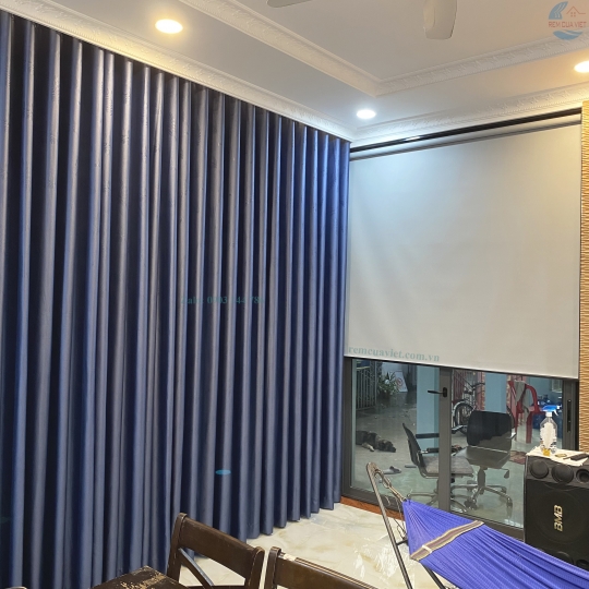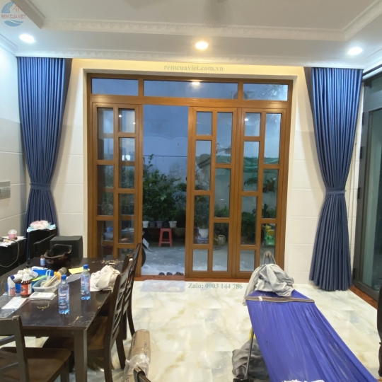 Rèm vải màu xanh đậm