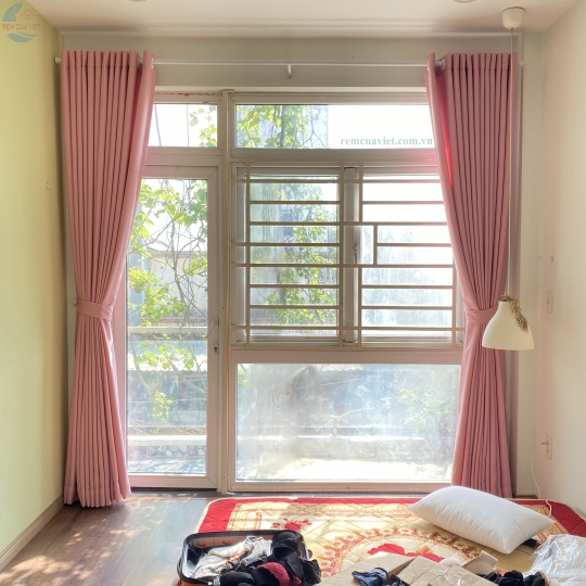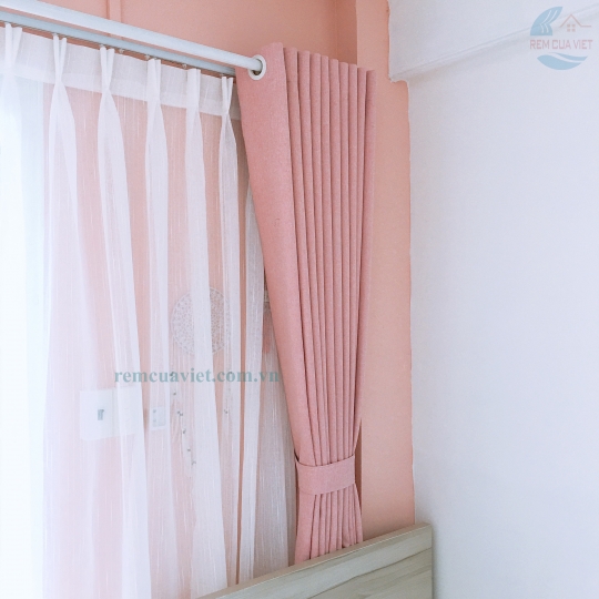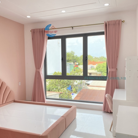 Màn vải 2 lớp màu hồng cản sáng 100%