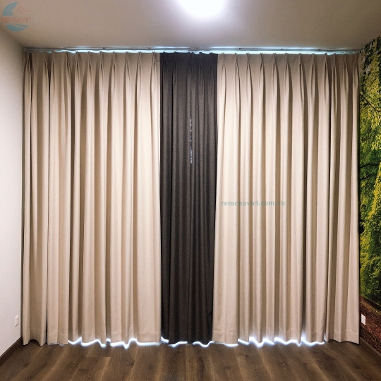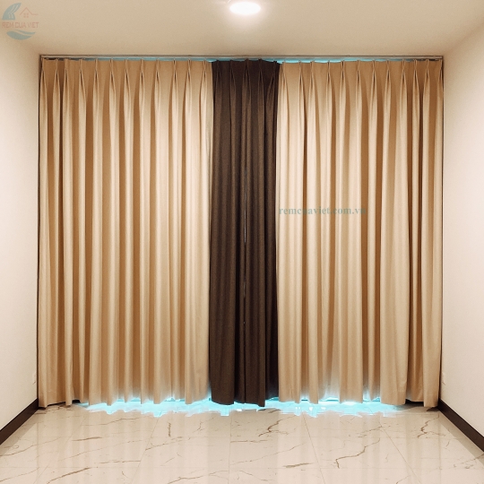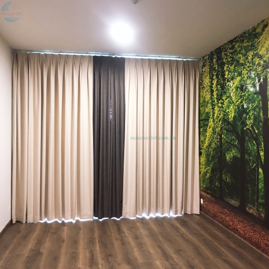 Rèm vải 2 lớp phối màu xám-kem cản sáng 100%, cách nhiệt