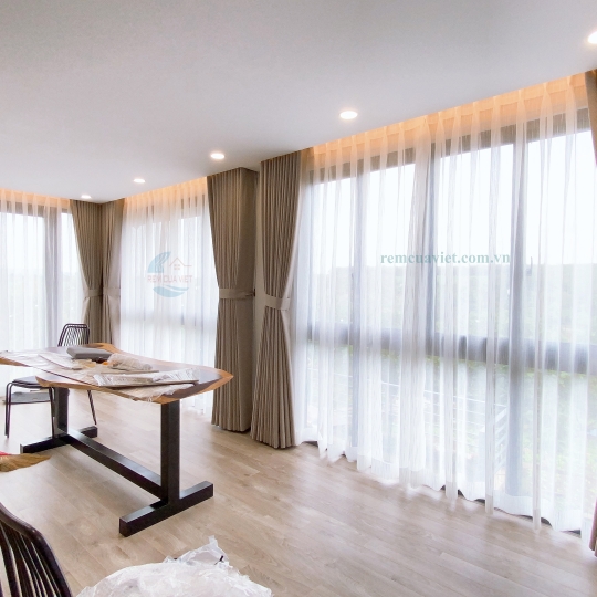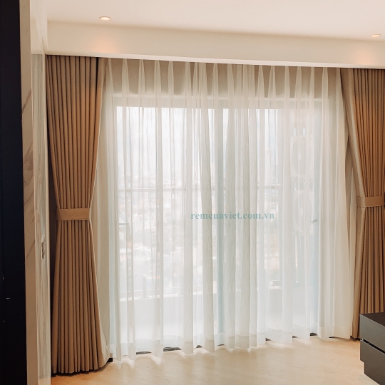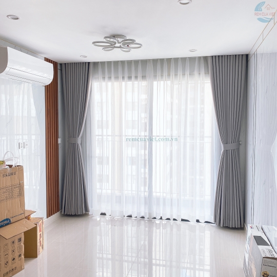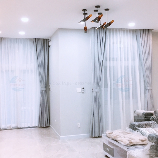 Kiểu may và kiểu lắp đặt. Tùy theo không gian thực tế khi chủ đầu tư bàn giao mà sẽ có những kiểu may phù hợp, tư vấn viên Rèm Cửa Việt sẽ đến nhà tư vấn trực tiếp, khảo sát từng cửa. Đối với phòng khách có thiết kế hộc rèm thì thường may định vị or xếp ly (hộc rèm định vị tối thiểu rộng 20cm, xếp ly tối thiểu 15cm cho rèm 2 lớp), nếu không có hộc rèm thì thường may kiểu ore lắp ngang tường.