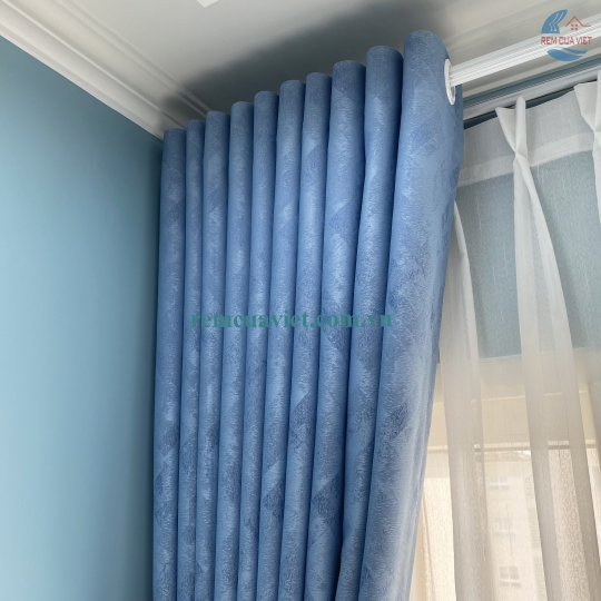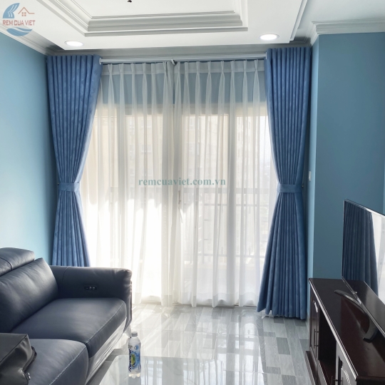 Rèm Vải Su 2 Lớp Màu Xanh Nước Biển