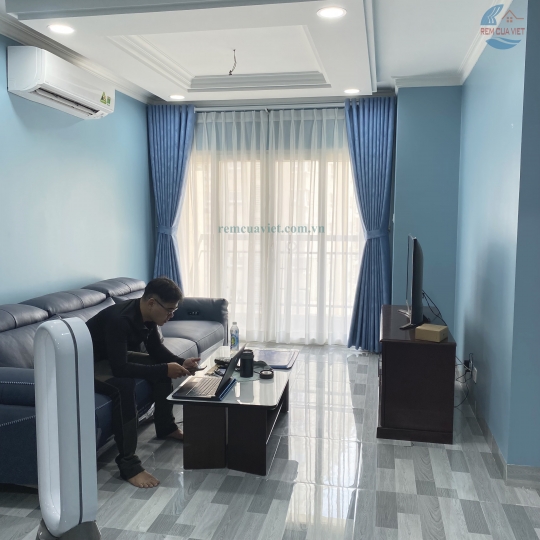 • Sản phẩm: Rèm Vải Su 2 Lớp Màu Xanh Nước Biển